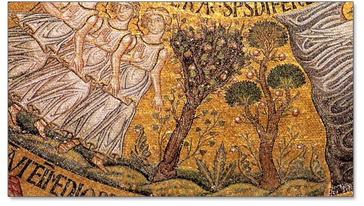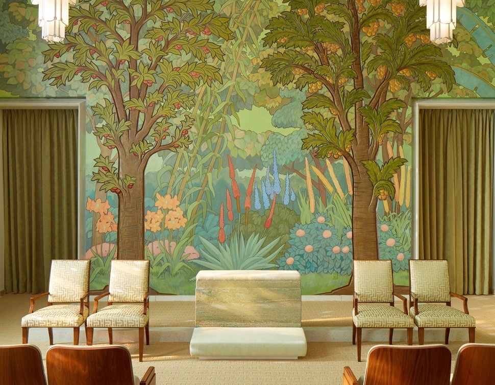 Church of Jesus Christ of Latter Day Saints Temple, Idaho Falls, Garden room showing two trees — tree of life and tree of knowledge of good and evil