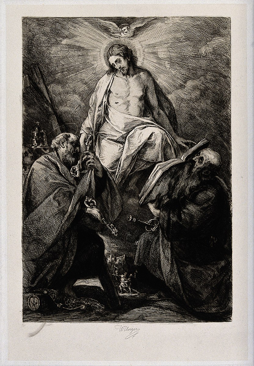 Christ with the Holy Ghost, Saint Peter the Apostle and Saint Paul the Apostle. Etching by W. Unger after G.B. Crespi. Wellcome Images Credit