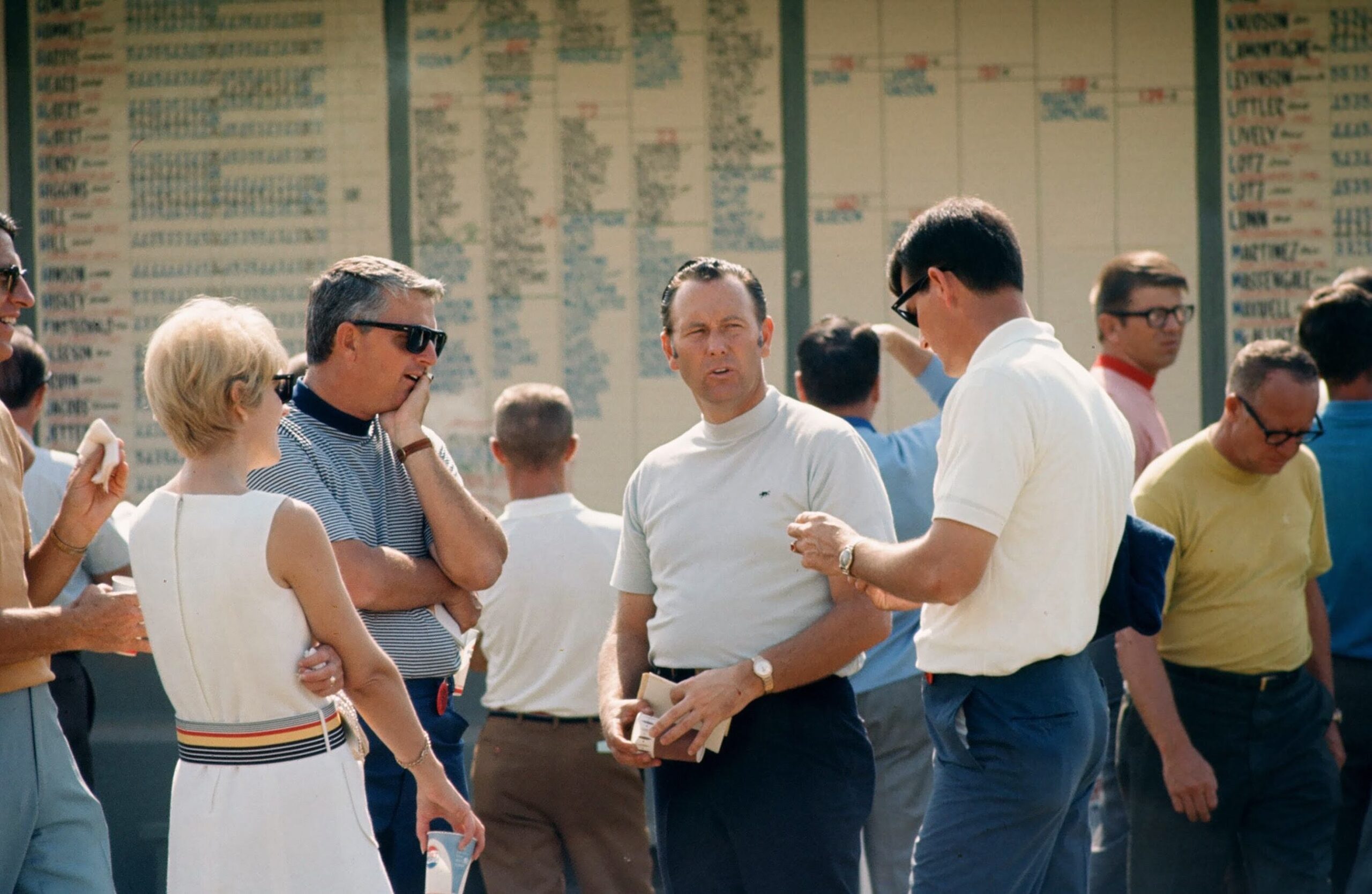 The Leader Board, Bob Hope Classic, Billy Casper in the center, my mom in a white dress to the left with my dad in his mock turtle neck and dark glasses.
