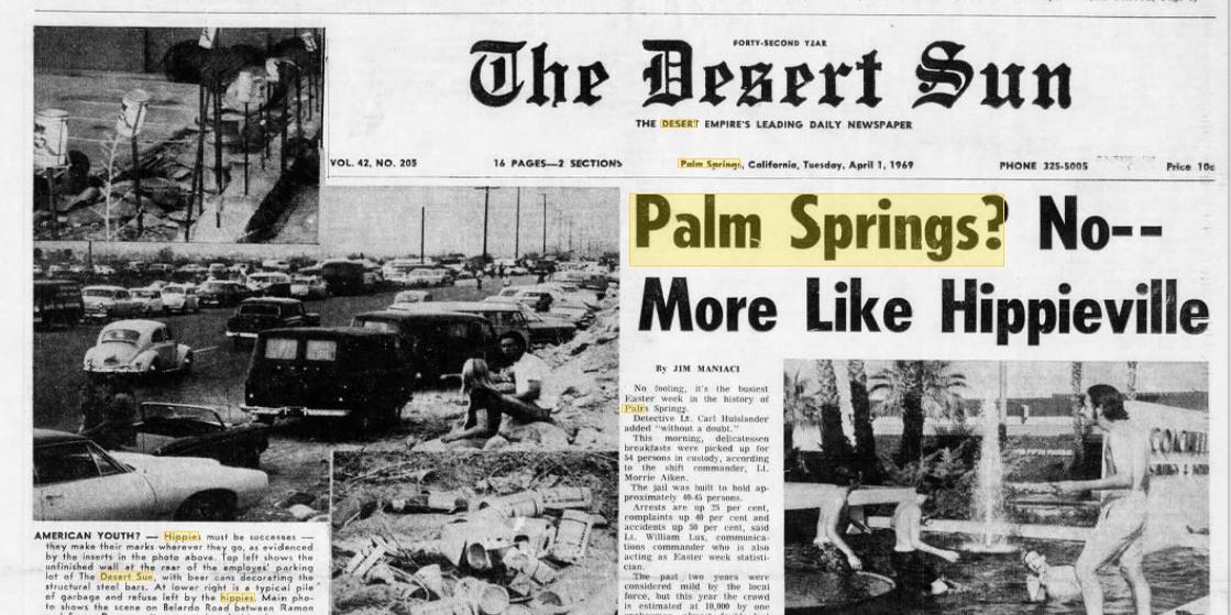 My Dad would spend his days at the tournament, and my Mom, sisters, and I would enjoy the pools and mineral springs where we stayed at “The Spa Hotel.” We would walk the entire Palm Springs strip and go into every store. One year, I remember waiting in a long line at this funky little cafe called Louise’s Pantry — and this hippie guy came up and asked me to go to the Falls in Tahquitz Canyon with him. I declined. I was probably 14 or 15 years old — which would make it 1968 – 1969 — but at any age, I would have said “no.” After we got a seat inside at a booth, Mr. Hippie guy came around to the window by our table and peered in at me. Creepy. I guess Palm Springs had an influx of Hippies during those years. Even Jim Morrison went for a swim at Tahquitz Falls.