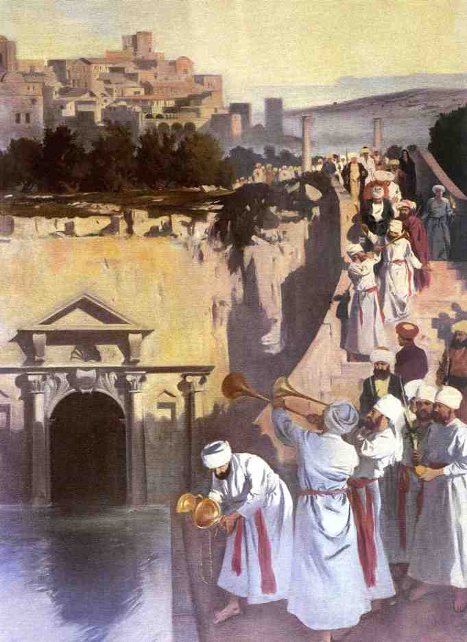 “He who has not seen the rejoicing at the place of the water-drawing has never seen rejoicing in his life. At the conclusion of the first festival day of Tabernacles they descended to the court of the women where they had made a great enactment. There were there golden candlesticks with four golden bowls on the top of each of them and four ladders to each, and four youths drawn from the priestly stock in whose hands were held jars of oil… there was not a courtyard in Jerusalem that was not illumined by the light of the place of the water-drawing. Men of piety and good deeds used to dance before them with lighted torches in their hands, and sing songs and praises. And Levites without number with harps, lyres, cymbals and trumpets and other musical instruments were there upon the fifteen steps leading down from the court of the Israelites to the court of the women, corresponding to the fifteen songs of ascents in the psalms…” (Babylonian Talmud, Tractate Sukkah 51a and 51b)(ref)