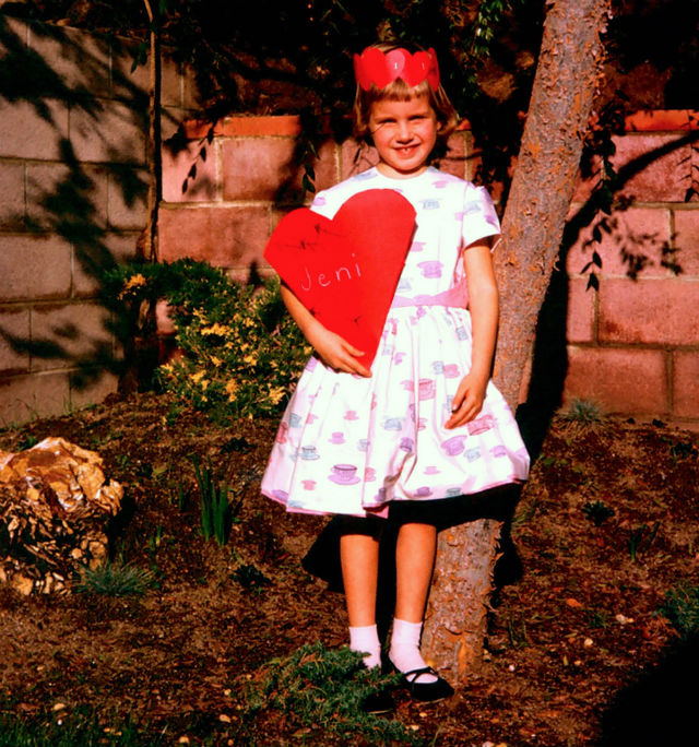 I remember this pink velveteen dress I got one year — maybe I was about 8 years old. At school, I remember making mailboxes and handing out little perforated valentines to hand out to classmates. And the room-mothers brought sugar cookies. And lots of havoc.
