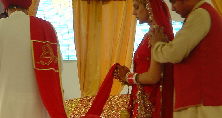 Each verse of the Laav has meaning, and each circling signifies a stage of becoming one, after the fourth circle, the couple are one with God — the spiritual union of two produces perfect joy – and they are blissfully married. While we were still sitting, the Priest brought around a bowl of Karah Prashad, a sacred bready type pudding offering which he had blessed. He hands it to you from a large bowl, and you cup your hands and raise them to receive the offering. It is a symbolic ritual of offering and receiving — a symbol of all are equal, as all are offered.
